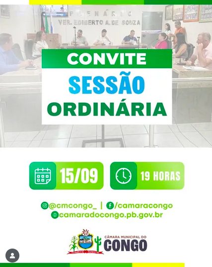 A Câmara Municipal do Congo convida toda a população para participar da Sessão Ordinária que…
